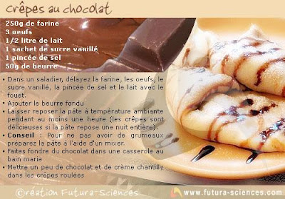 Le 2 février, c'est la Chandeleur, alors on fait le plein de crêpes et à chacun sa recette : crêpe au sucre, à la confiture, au chocolat, Suzette…Saviez-vous que quelque soit l’année, la fête de la chandeleur tombe le 2 février soit quarante jours après Noël?.